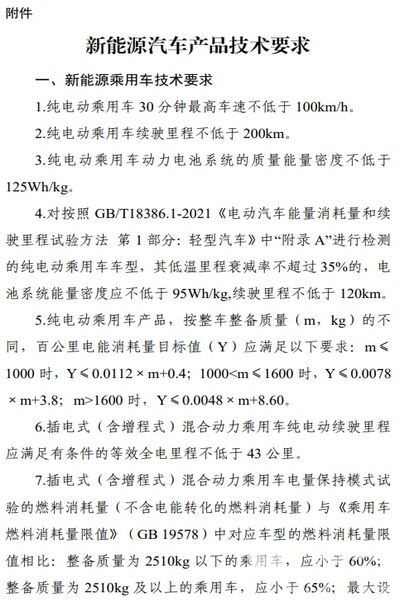 工业和信息化部:关于调整减免车辆购置税新能源汽车产品技术要求的公告