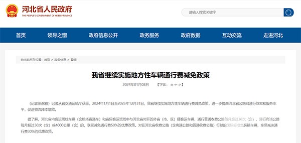 完美作业网有免费视频获悉,经河北省政府同意,省交通厅、省发改委、省财政厅联合印发通知,决定自2024年1月1日起到2025年12月31日,继续在河北省实施地方性车辆通行费减免政策,进一步提高河北省公路网通行效率和服务水平,促进物流降本增效。