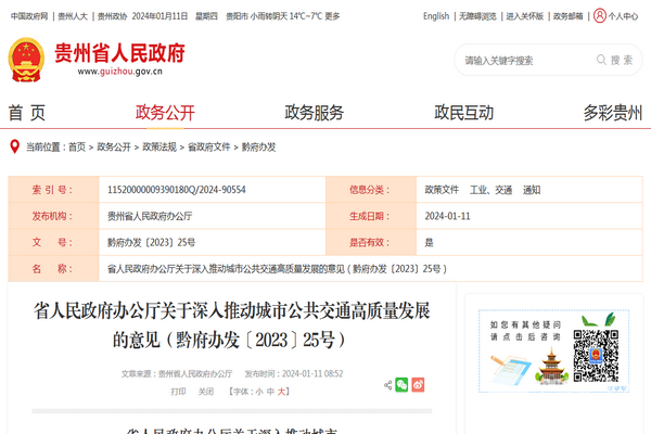 为深入贯彻国家城市公共交通优先发展战略,落实《中共贵州省委贵州省人民政府关于印发〈贵州省推进交通强国建设实施纲要〉的通知》,推动城市公共交通高质量发展,经省人民政府同意,提出如下意见。