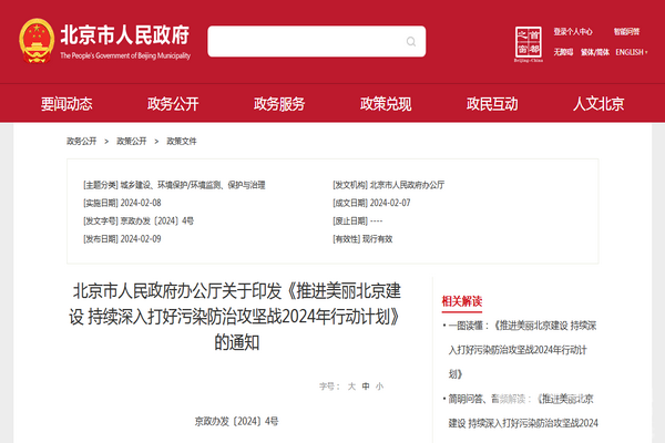 北京市持续深入打好污染防治攻坚战2024年行动计划发布