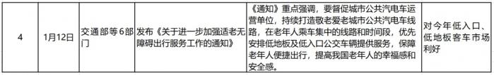 交通部等6部门选择在2024年新年伊始这个时间节点发布《通知》,并明确指出要求各地公交客车运营企业,要优先安排城市低地板、低入口公交客车来保障我国老年人的出行便利,实际上这是在积极引导2024年我国城市公交客车的重点发展方向。