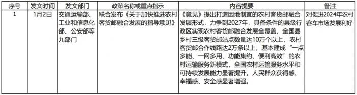 现对2024年1月与客车行业相关的政策进行汇总和评析: