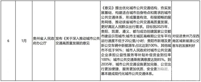 评析:《意见》目标具体,明确的提出了今后贵州省城市公交客车发展的规划和要求,并明确了今后对地方政府对城市公交客车运营资金补贴的及时性要求,对进一步调动公交运营公司的积极性利好,对促进车今后贵州重点城市新能源城市公交客车的规范、健康和优质发展利好,同时也将对今后我国西南区域城市公交客车的发展起到一定的辐射作用。