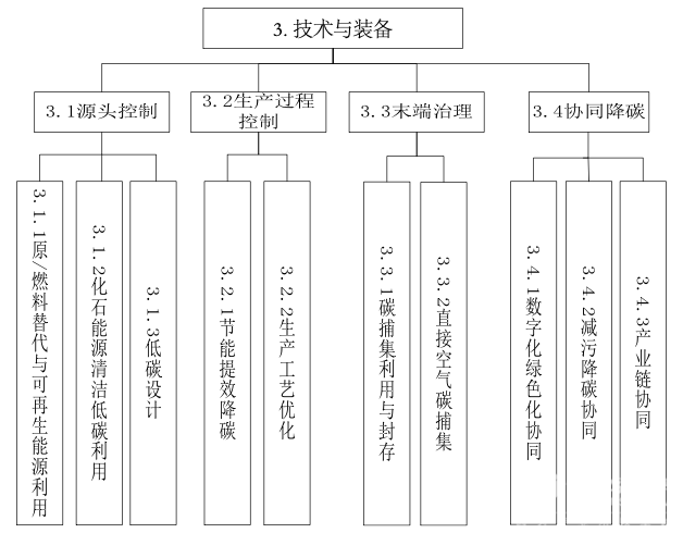 主要指能够有效降低工业领域温室气体排放的相关技术和装备标准,包括温室气体的源头控制、生产过程控制、末端治理以及协同降碳等 4 类。