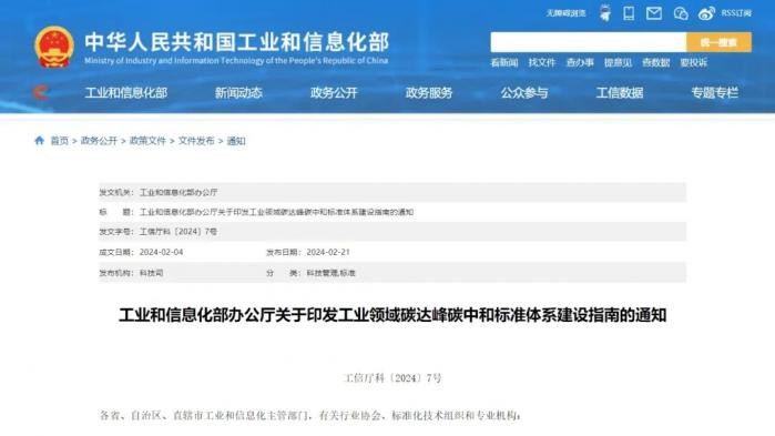 工信部发布《工业领域碳达峰碳中和标准体系建设指南》