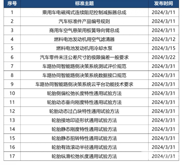 三、2024年3月份发布的相关汽车行业标准法规汇总