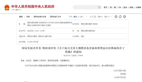 关于加力支持大规模设备更新和消费品以旧换新的若干措施