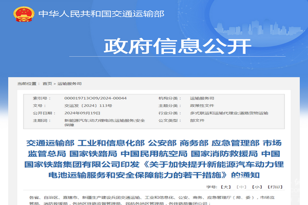 交通运输部:新能源汽车动力锂电池运输服务和安全保障能力若干措施发布