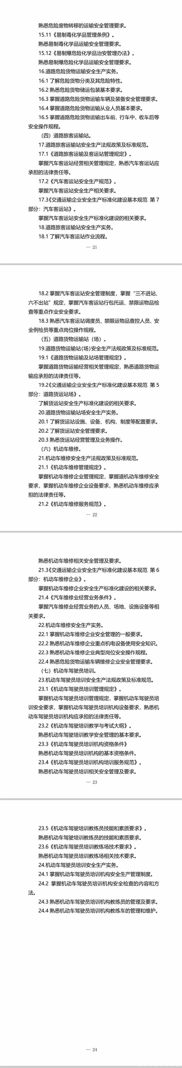 我部于2019年制定发布了《管理办法》和《考核大纲》,明确了考核对象、职责分工、考核组织、结果应用等具体要求。截至2024年7月底,共有121.12万人次道路运输企业的“两类人员”参加考核,100.84万人考核通过。文件的发布实施,有力促进了“两类人员”安全管理能力的提升,对预防和减少道路运输事故发生发挥了重要作用。5年来,《安全生产法》和我部相关部门规章进行了相应调整,对道路运输安全管理提出了新要求,需体现在《管理办法》和《考核大纲》中;同时,各地在开展“两类人员”考核工作中也遇到一些新问题,需要通过修订文件予以解决。