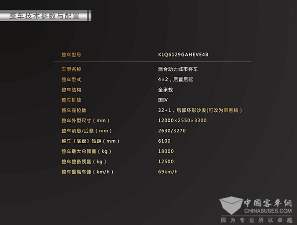 海格KLQ6129GAHEVE4B混合动力城市客车 详细介绍