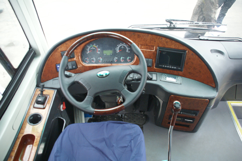 SLG6800C4ZR整车曲线棱角分明,宽广车窗视野宽阔,金刚外观霸气外漏,张弛有度;采用高密度海绵座椅,一键换新风系统,使乘客乘坐更舒适;采用三维人机工程研究、测力方向盘、陀螺仪、换挡力和踏板力传感器等高精度高灵敏度的进口仪器,有效减少驾驶员操纵力。