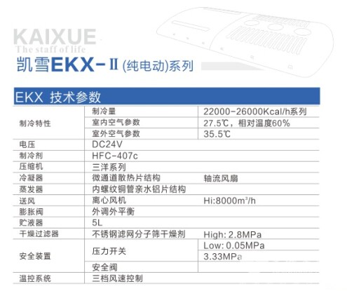 郑州凯雪EKX-Ⅱ(纯电动)系列空调参数配置