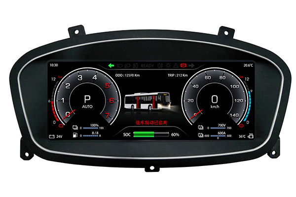 当前客车产品的神经系统——整车网络架构上,进行数据通讯的信息量俱增,需要仪表显示的内容量和人机交互需求也随之大幅提升,全液晶仪表已经成为信息化、网联化、电动化时代客车产品的必备信息显示终端。