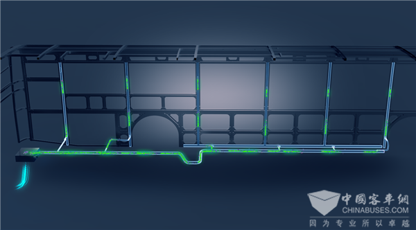 整个车内空气净化系统是利用原铝⻋车身独有管道设计的独立系统,无需额外增加采购成本,无需后期运营维护。此外,铝合金的防腐特性,不惧特殊时期增加的消毒强度,不会锈蚀,为公交车提供全⽣生命周期防护。整个系统绿色环保,可无限次高效循环。
