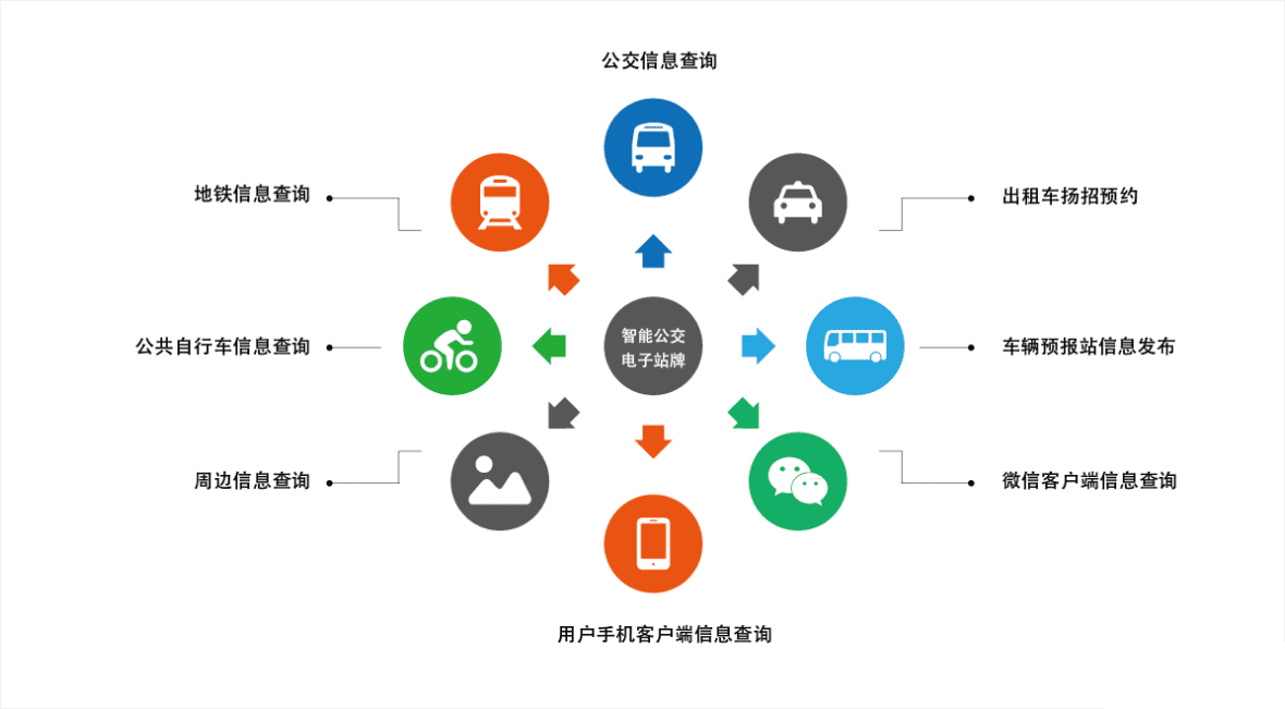 正先智能化公交电子站牌集成了公交信息查询、车辆预报站信息发布、出租车扬招预约、微信客户端信息查询、手机移动端管理管家、周边数字化信息发布、公共自行车信息查询、地铁信息查询等智能化功能,智能化程度高,技术先进,运行稳定,兼容性可扩展强,功能丰富。