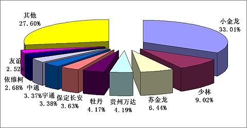 图一:2007年小型客车销售前10名销量图