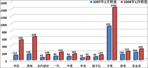 注:由于存在边际报酬递减规律,2008年1月份累积销售量未超过50辆大型客车的企业未纳入统计体系。