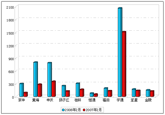 图一:2008年前2月大型客车销售增长前10名销量图