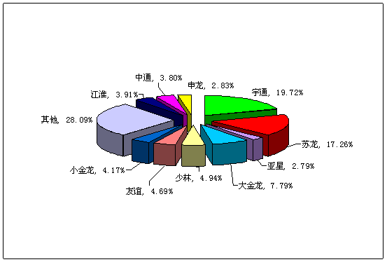 图一:2008年前5月中型客车销量前10名市场份额图