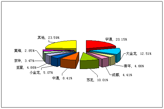 图一:2009年1月大型客车销售前10名市场份额图