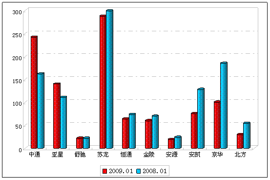 表一:2009年1月大型客车销售增长前10名企业排名表 单位:辆