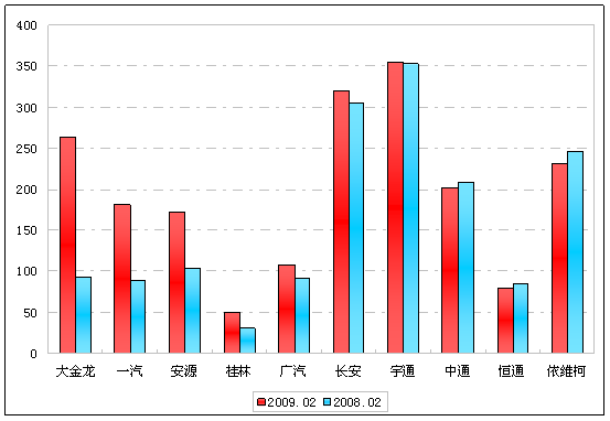 注:由于存在边际报酬递减规律,2009年2月累积销售量未超过40辆小型客车的企业未纳入统计体系。