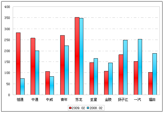 注:由于存在边际报酬递减规律,2009年2月累积销售量未超过40辆大型客车的企业未纳入统计体系。