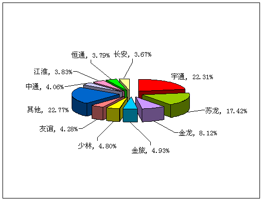 表一:2009年前5月中型客车销售量前10名企业排名表 单位:辆