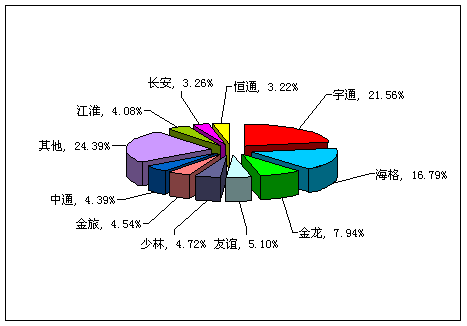 图一:2009年前7月中型客车销售前10名市场份额图