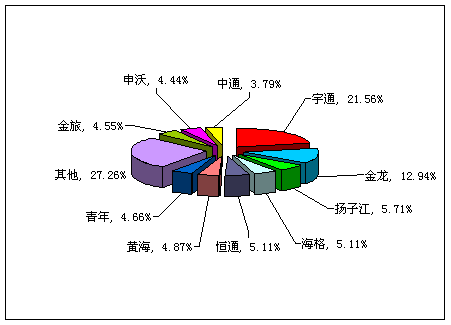 表一:2009年前7月大型客车销售量前10名企业排名表 单位:辆