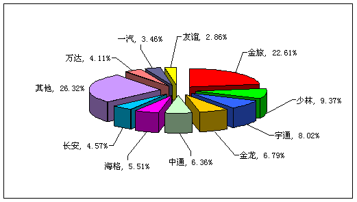 图一:2009年前8月小型客车销售前10名市场份额图