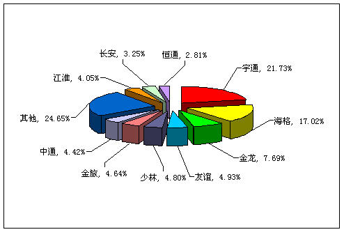 图一:2009年前8月中型客车销售前10名市场份额图