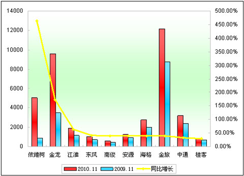 注:2010年前11月销售量未超过500辆小型客车的企业未纳入统计体系。