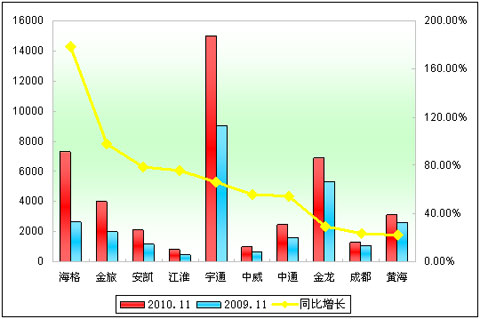 注:2010年前11月销售量未超过500辆大型客车的企业未纳入统计体系。