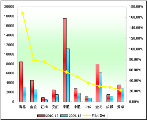 2010年度大型客车销售增长TOP10