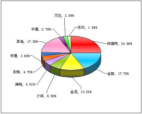 图一:2011年前4月小型客车销售前10名市场份额图