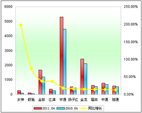 2011年前4月大型客车销售增长TOP10