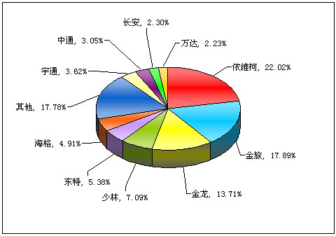 图一:2011年前5月小型客车销售前10名市场份额图