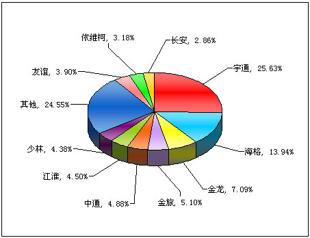 图一:2011年前5月中型客车销售前10名市场份额图