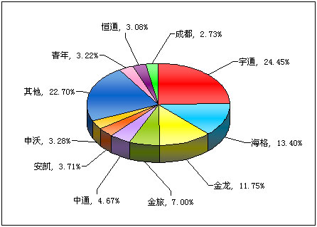 图一:2011年上半年大型客车销售前10名市场份额图