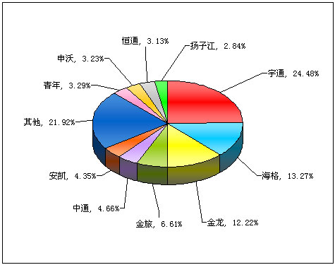表一:2011年前7月大型客车销售量前10名企业排名表 单位:辆