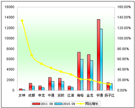 注:2011年前三季度销售量未超过300辆大型客车的企业未纳入统计体系。