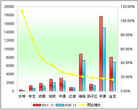 注:2011年前11月销售量未超过300辆大型客车的企业未纳入统计体系。