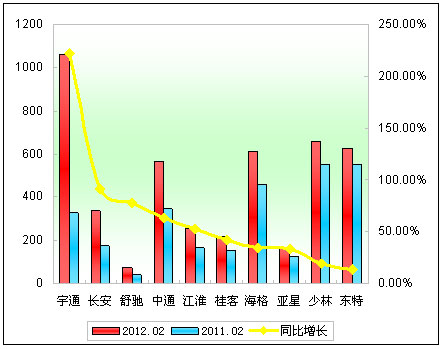 注:由于存在边际报酬递减规律以及2012年农历春节的因素,2012年前2月累积销售量未超过50辆小型客车的企业未纳入统计体系。