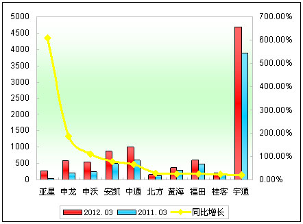 注:由于存在边际报酬递减规律以及农历春节的原因,2012年前3月累积销售量未超过50辆大型客车的企业未纳入统计体系。