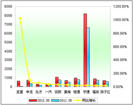 注:由于存在边际报酬递减规律以及农历春节的原因,2012年前5月累积销售量未超过100辆大型客车的企业未纳入统计体系。