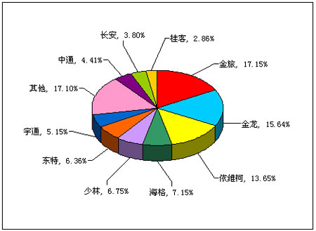 图一:2012年上半年小型客车销售前10名市场份额图