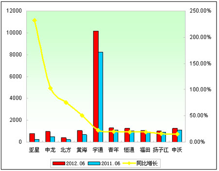 注:由于存在边际报酬递减规律以及农历春节的原因,2012年前6月累积销售量未超过200辆大型客车的企业未纳入统计体系。