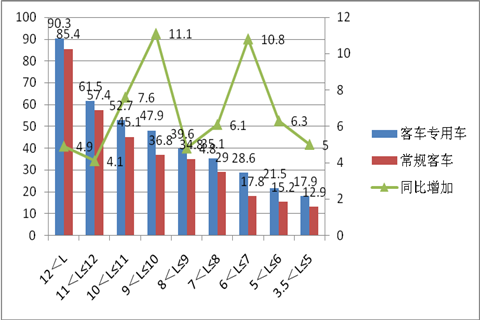 从上图表可以看出:客车专用车单辆平均售价全部在相应区段的常规客车之上。相差的最大比例是9-10米,高出常规车型达11.1万元。