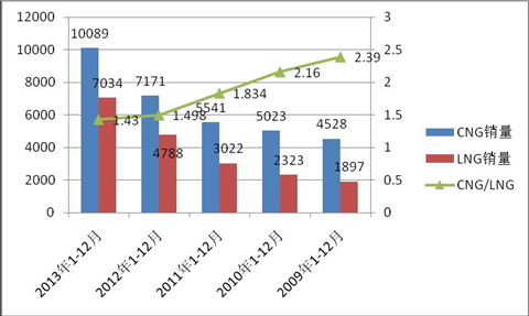 1、2013年1-12月,LNG公交客车与公路客车的销量比例均大于2,且有渐渐减小的趋势,说明目前LNG公交客车仍然是LNG客车市场的绝对主体,同时有渐渐向公路客车市场延伸的迹象。